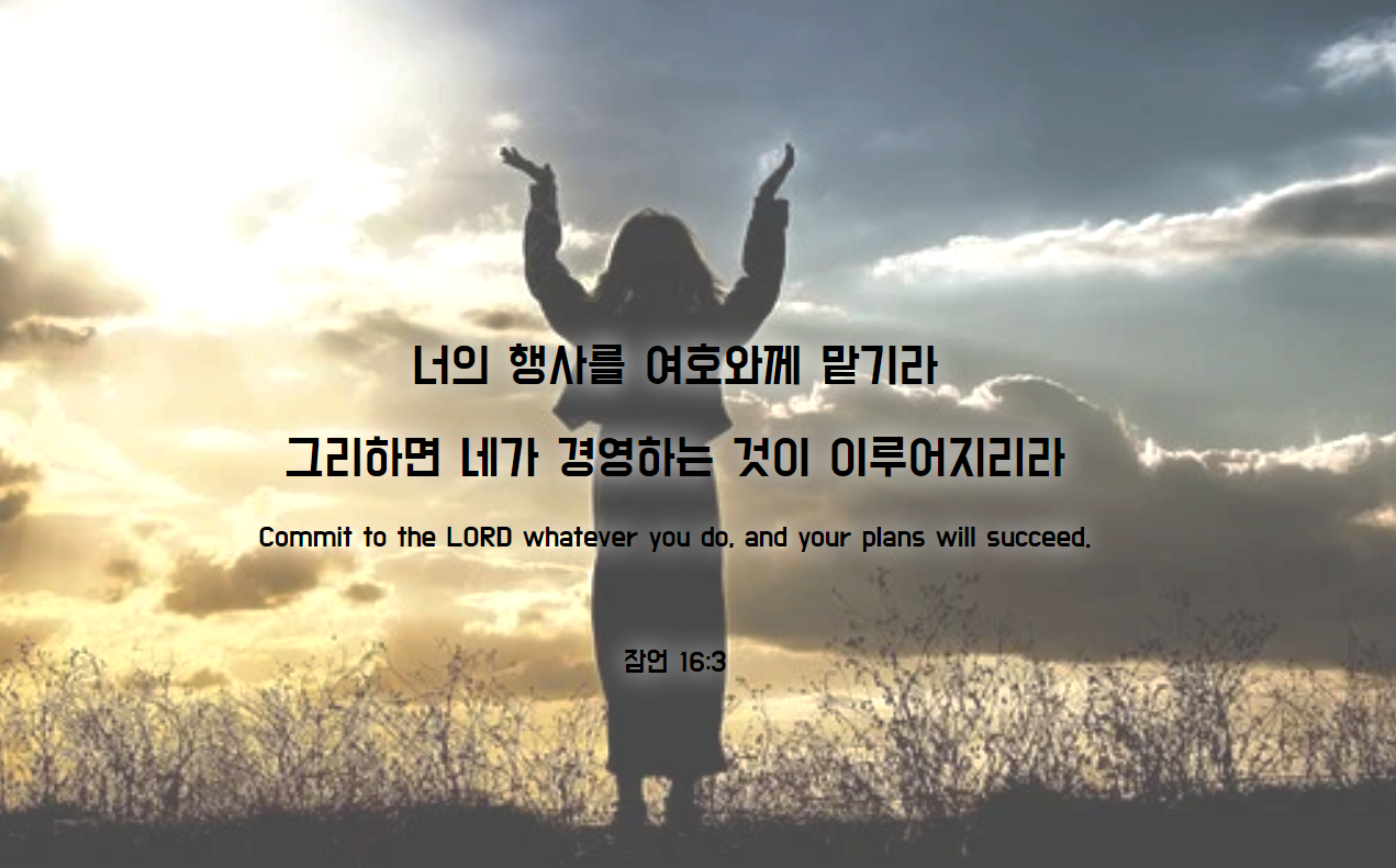 3너의 행사를 여호와께 맡기라 그리하면 네가 경영하는 것이 이루어지리라