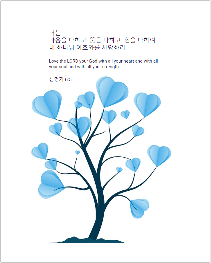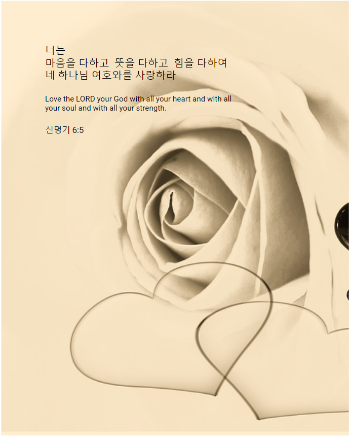 5너는 마음을 다하고 뜻을 다하고 힘을 다하여 네 하나님 여호와를 사랑하라