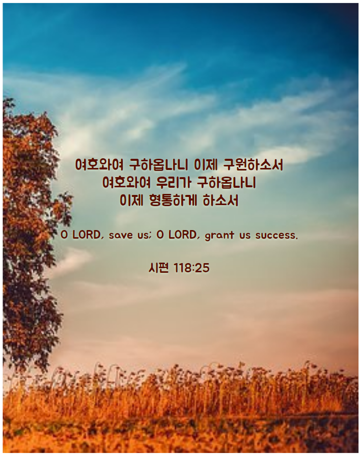 25여호와여 구하옵나니 이제 구원하소서 여호와여 우리가 구하옵나니 이제 형통하게 하소서