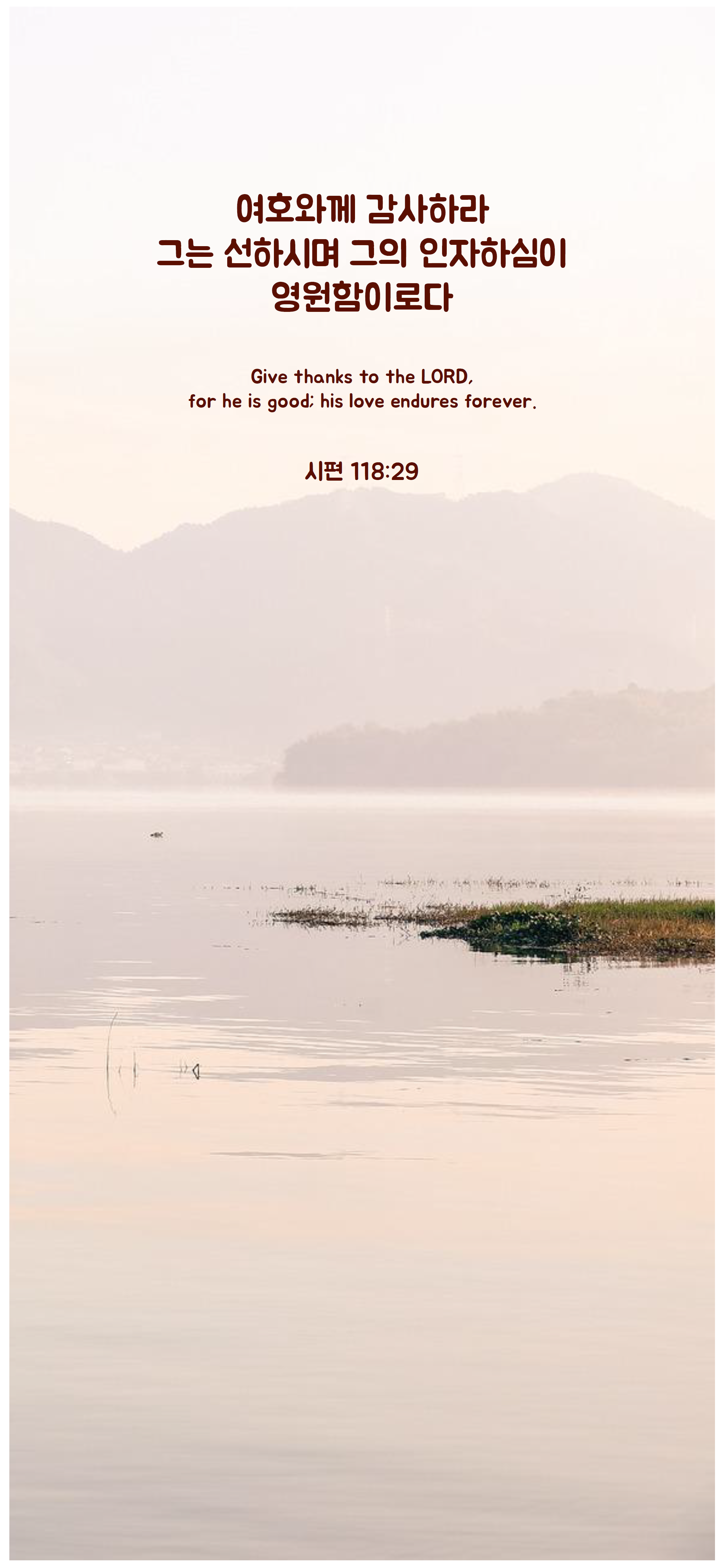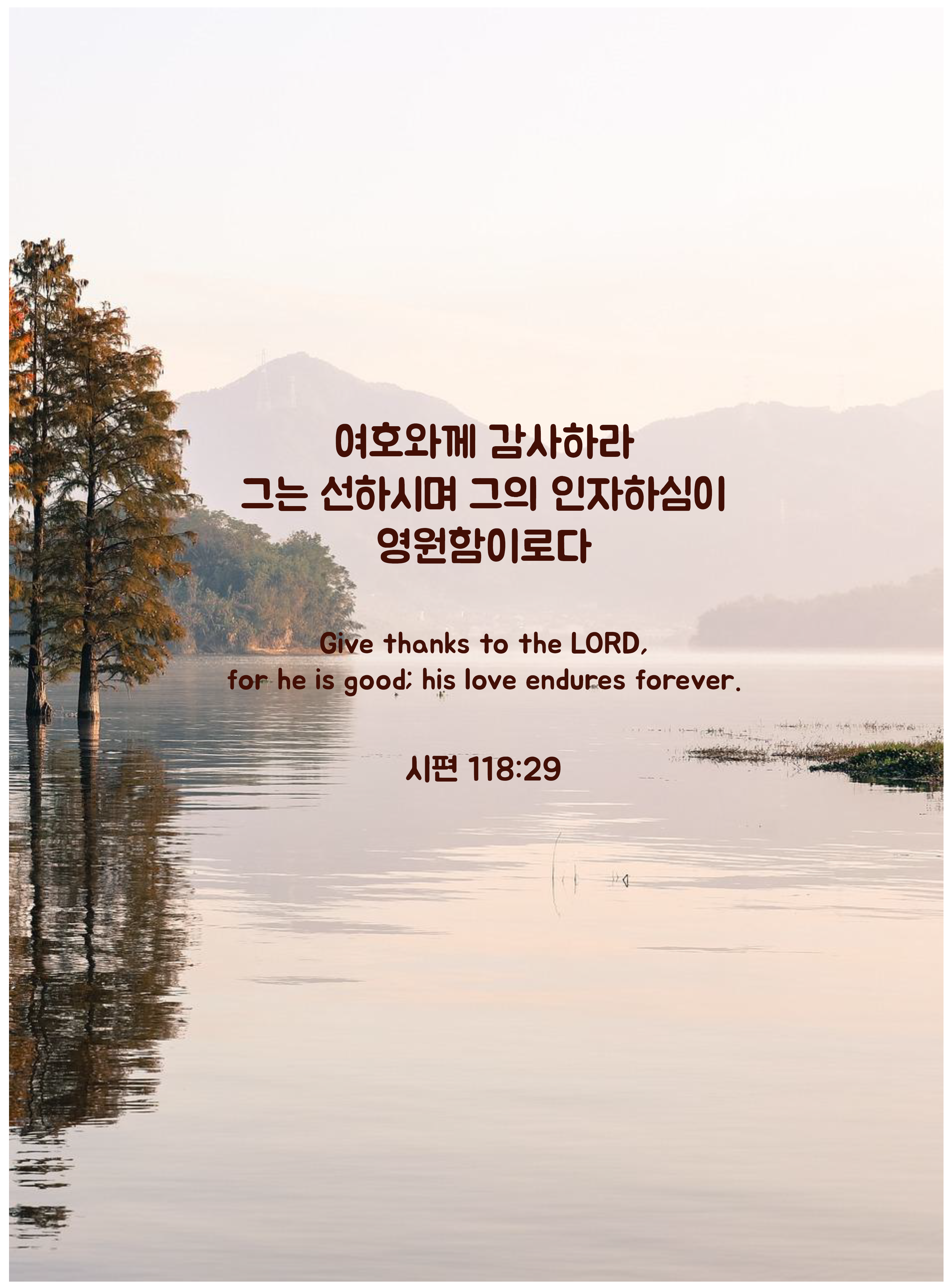 29여호와께 감사하라 그는 선하시며 그의 인자하심이 영원함이로다