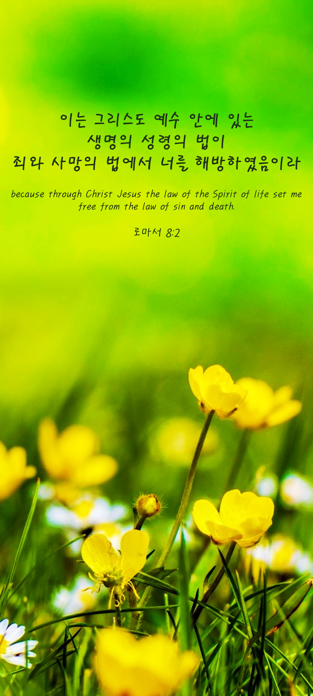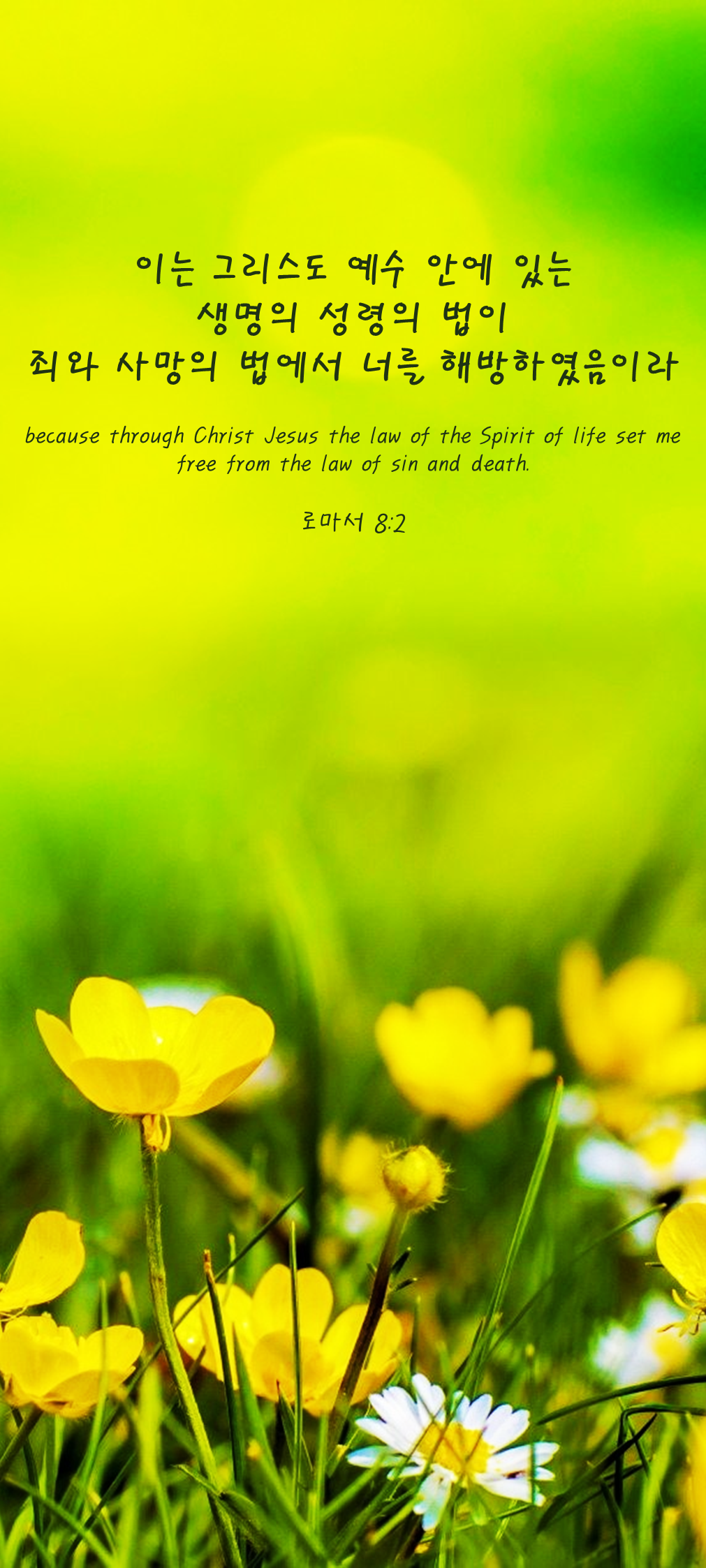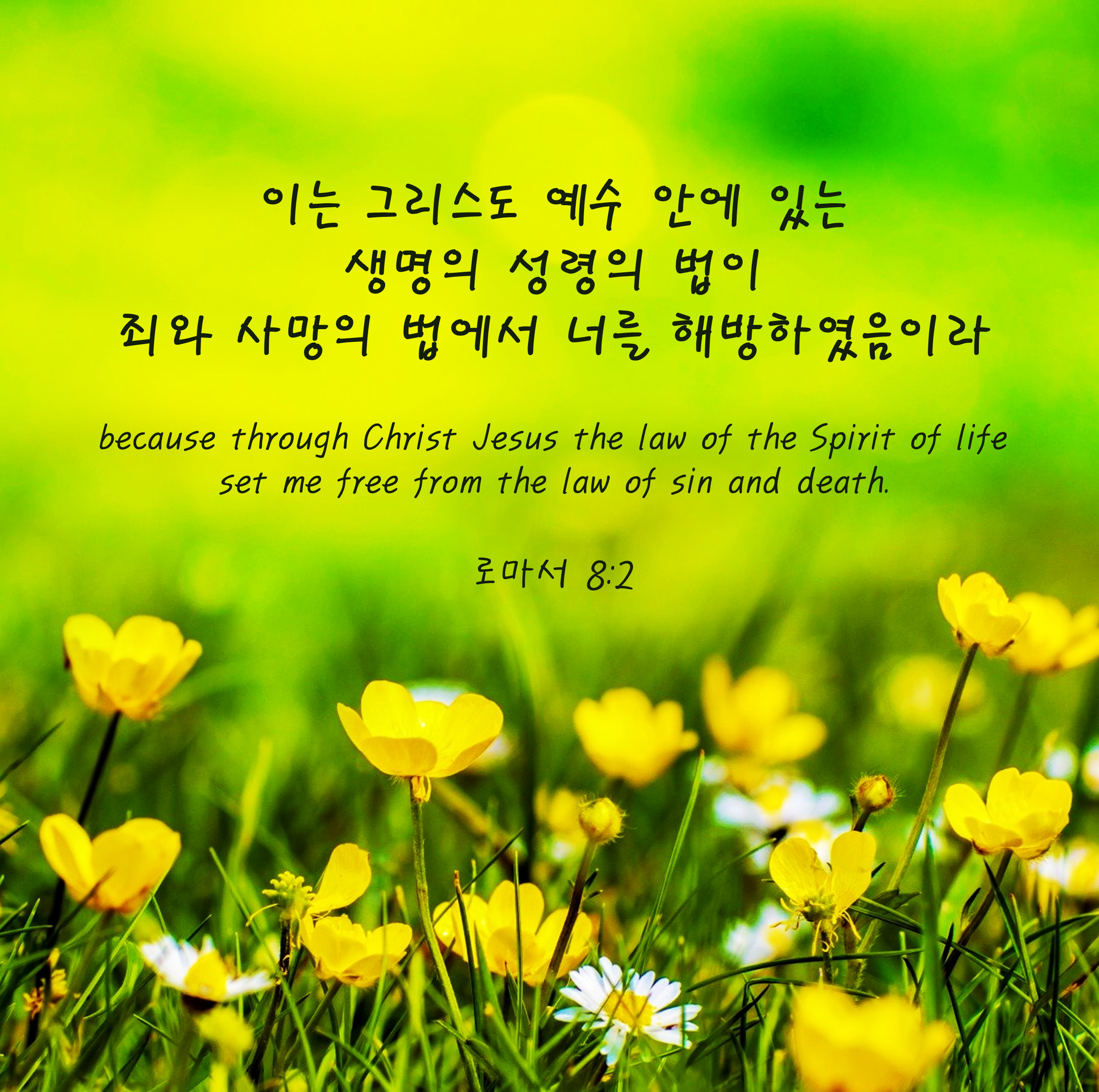 2이는 그리스도 예수 안에 있는 생명의 성령의 법이 죄와 사망의 법에서 너를 해방하였음이라