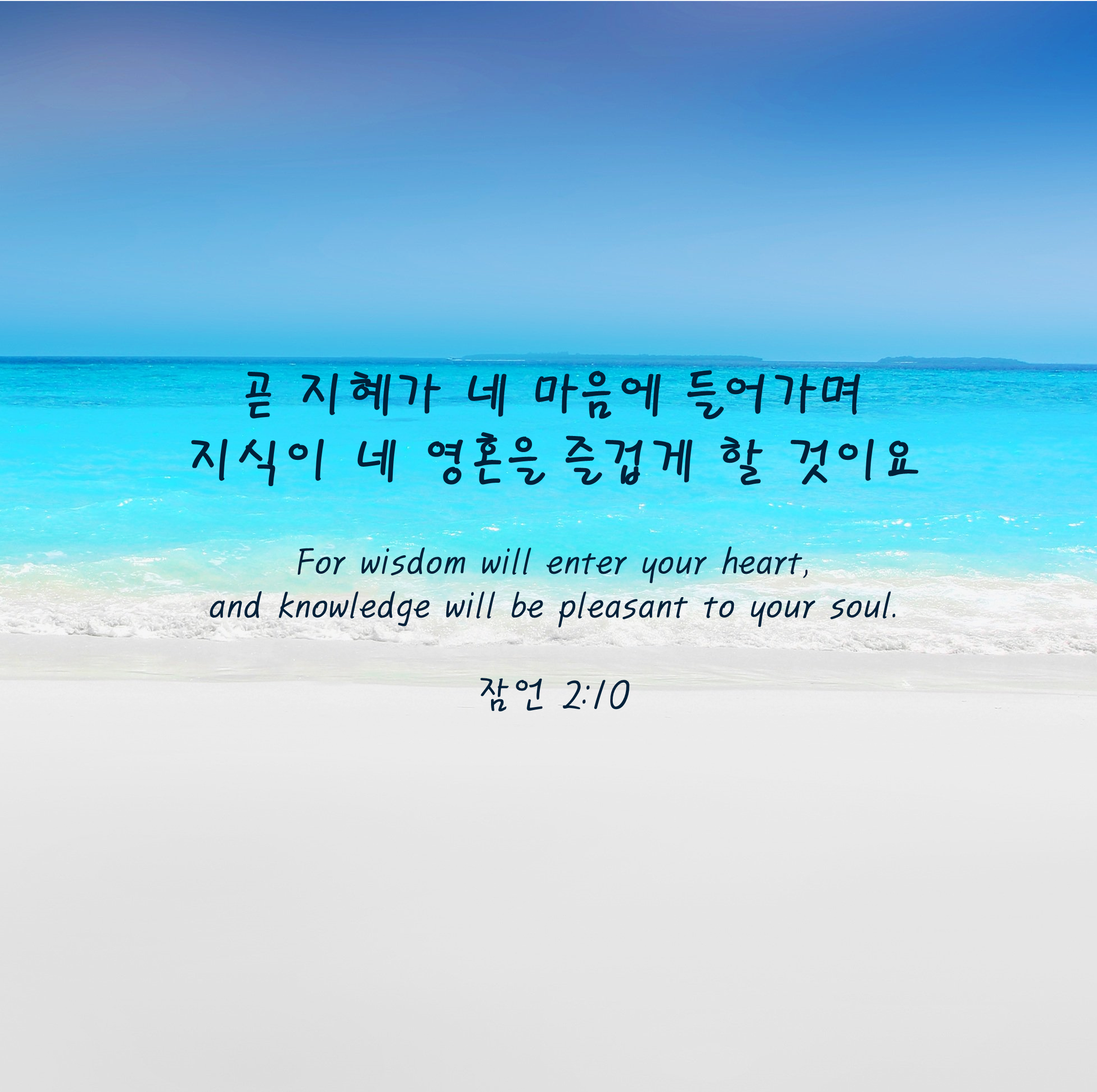 10곧 지혜가 네 마음에 들어가며 지식이 네 영혼을 즐겁게 할 것이요