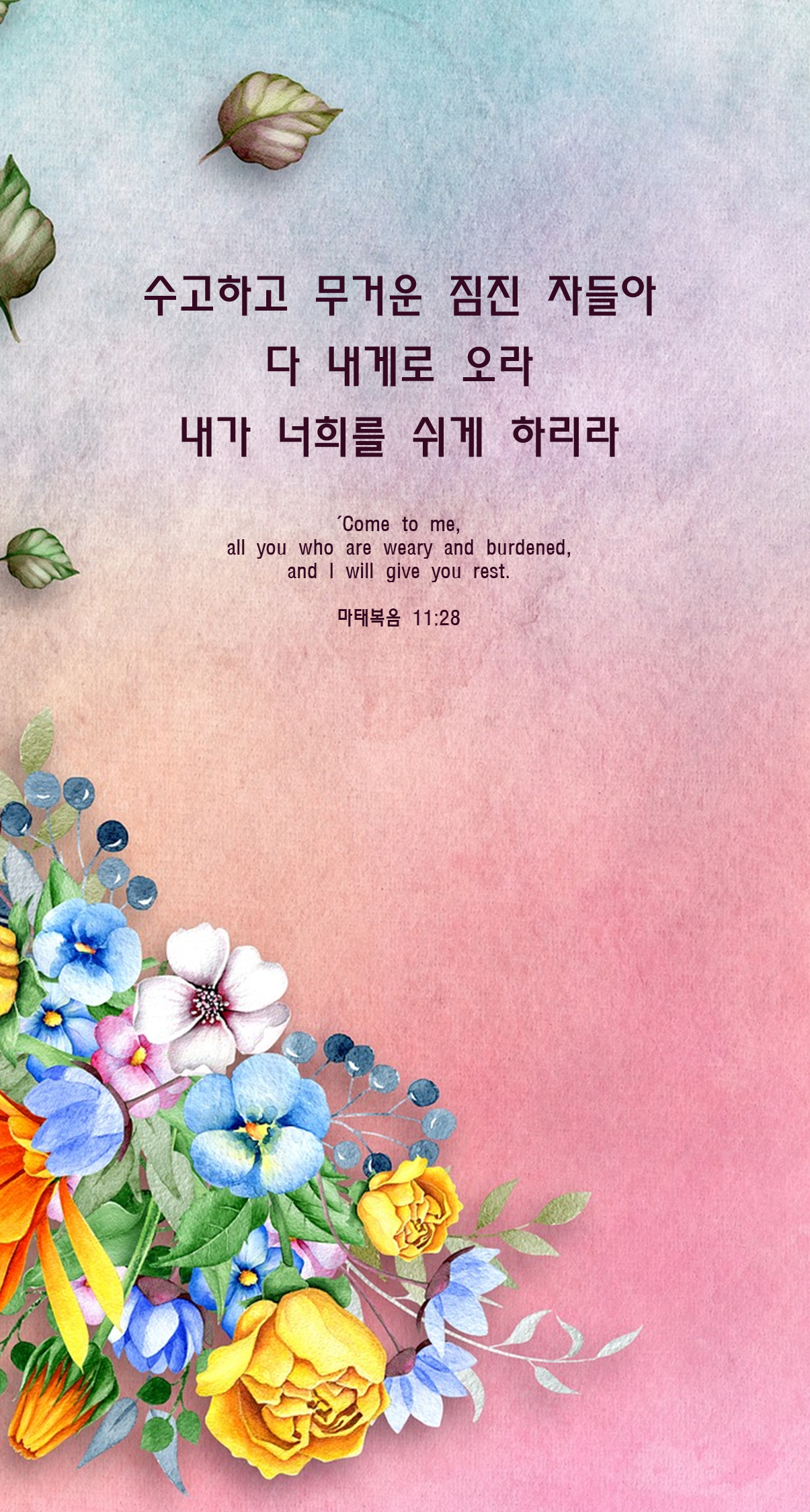 28수고하고 무거운 짐진 자들아 다 내게로 오라 내가 너희를 쉬게 하리라