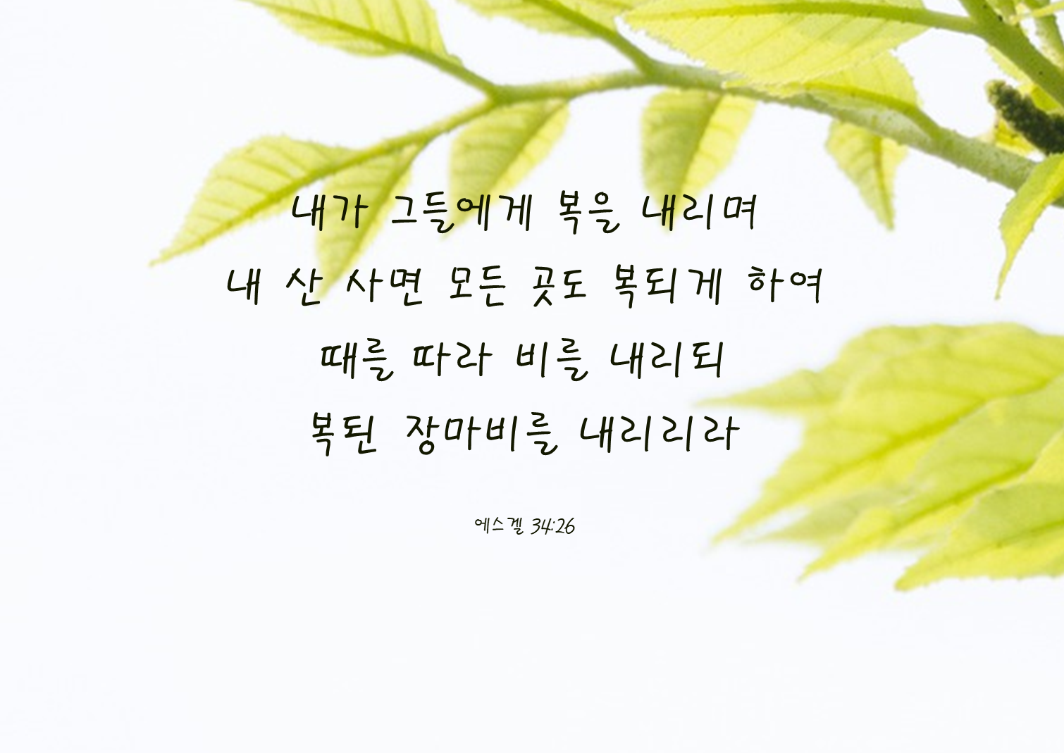 26내가 그들에게 복을 내리며 내 산 사면 모든 곳도 복되게 하여 때를 따라 비를 내리되 복된 장마비를 내리리라