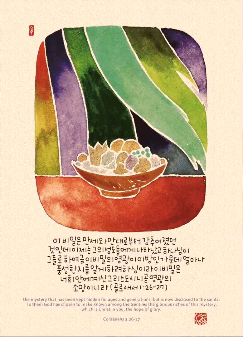 27 하나님이 그들로 하여금 이 비밀의 영광이 이방인 가운데 얼마나 풍성한지를 알게 하려 하심이라 이 비밀은 너희 안에 계신 그리스도시니 곧 영광의 소망이니라
