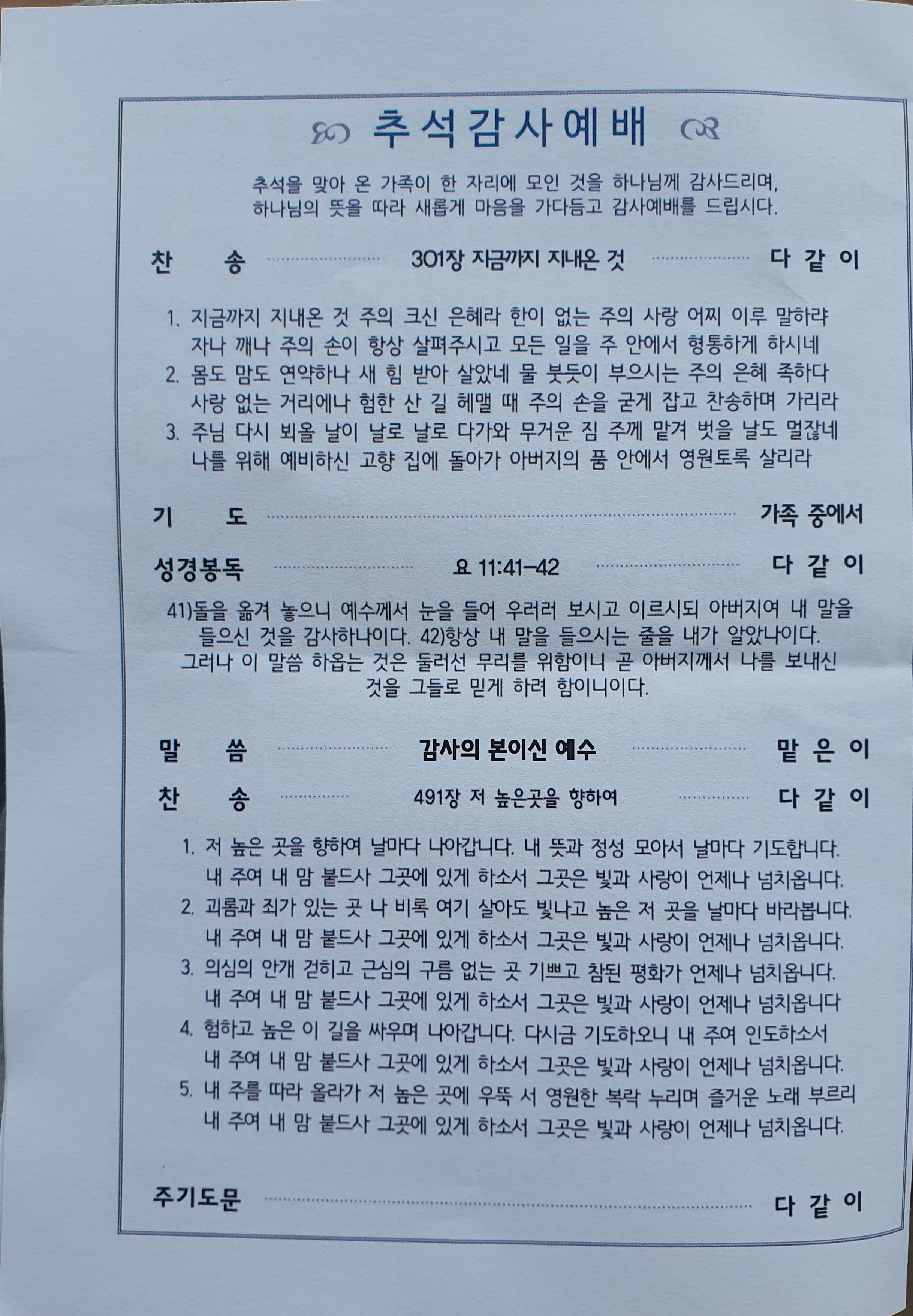 추석감사예배